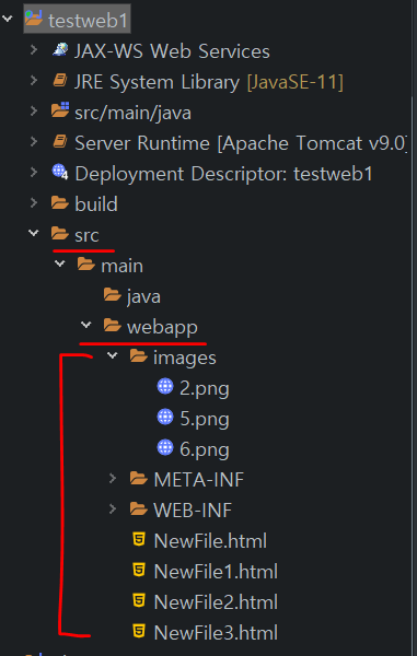 각 요소들을 webapp 폴더 안에 만들 때, 같은 레벨의 요소들로 만들어야한다.
