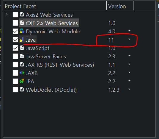 java 버전을 원하는 버전으로 생성 후 만든다.