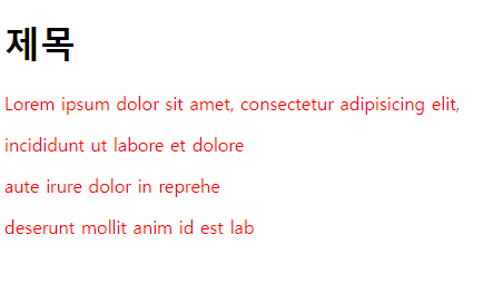 <p>태그에만 빨간글자가 적용되는 것을 볼 수 있다.