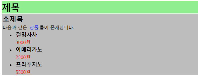 <p>다음과 같은 <span class="blue">상품</span>들이 존재합니다.</p>
