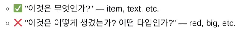 - Element 이름은 상태(state)가 아닌 용도(purpose)를 나타내야함