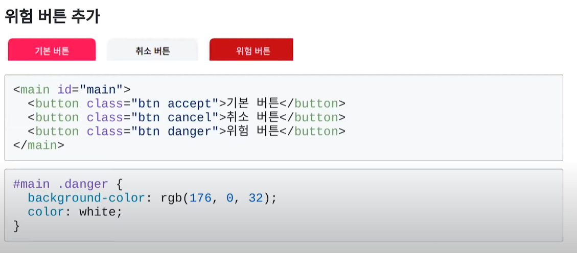 danger 클래스를 추가로 작성하여 위험 버튼을 구현할 수 있음