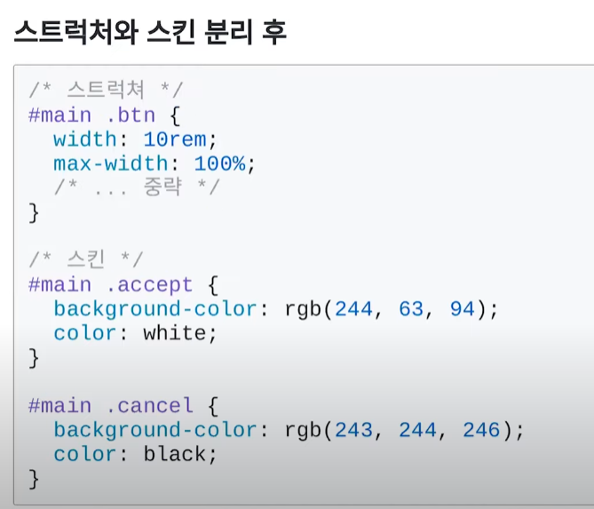 각 버튼마다 다른 부분인 color와 background-color를 스킨으로 분리함