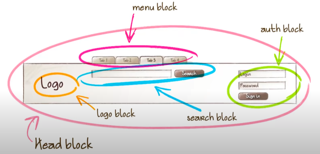 - 헤더, 메인영역, 사이드 바 등 웹사이트의 레이아웃을 구성하는 큰 모듈에 관한 규칙
