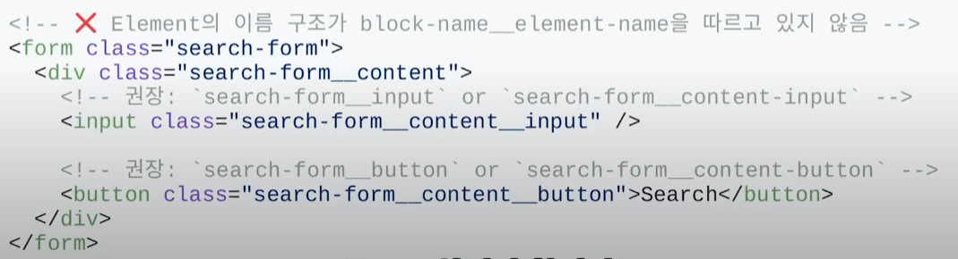 => Element의 이름은 block__element1__element2 와 같이 될 수 없음
