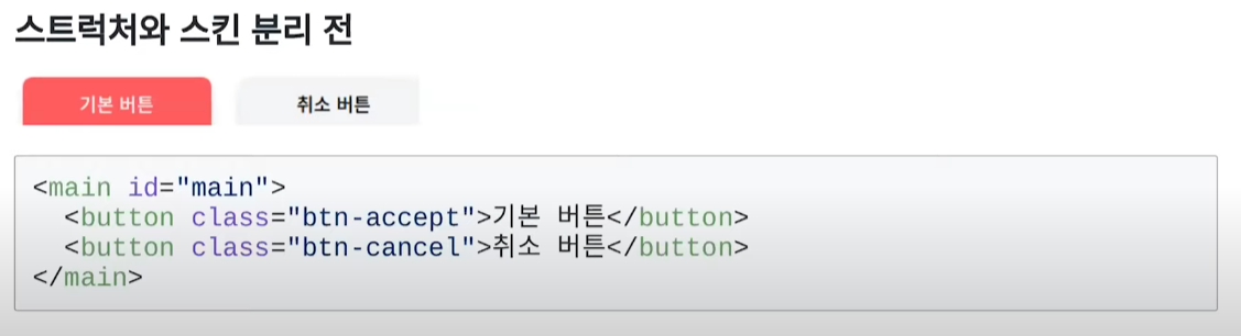 - CSS가 HTML 구조와 강하게 결합되어 있음
