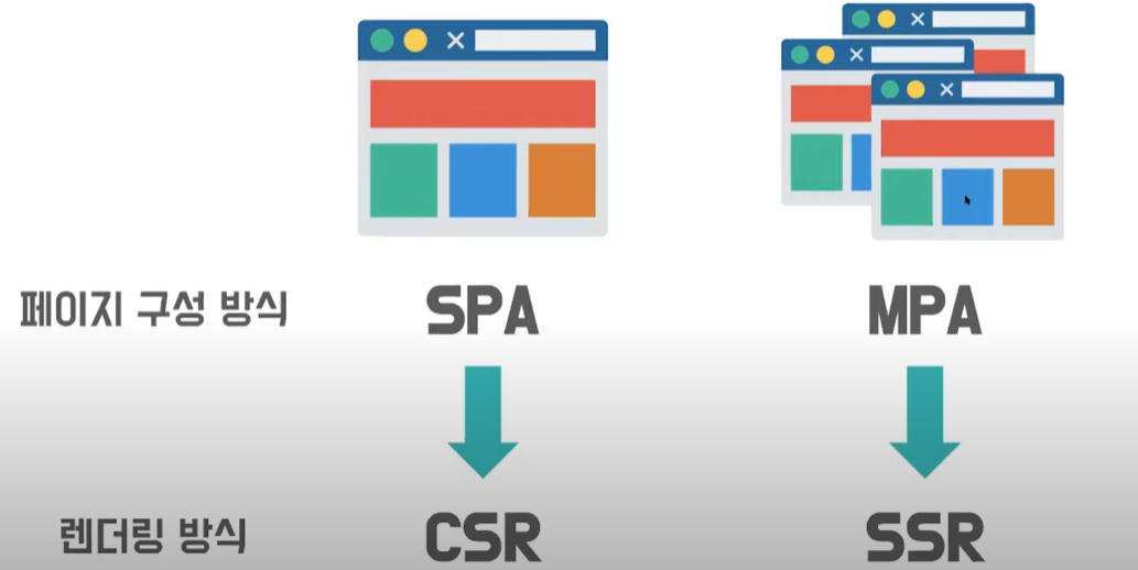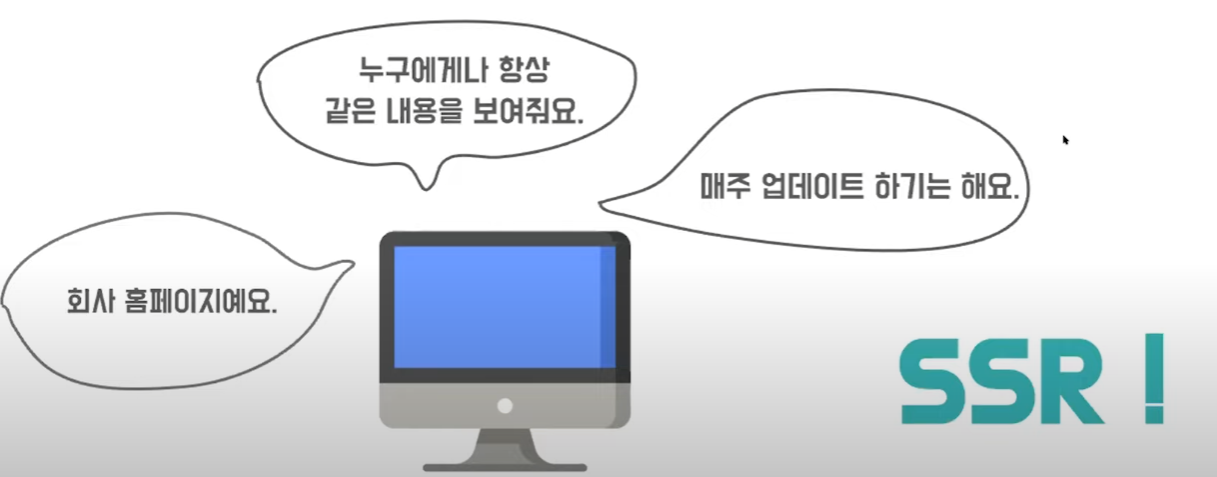 - 리액트, 뷰, 랭글러 등을 이용하여 SPA를 만들고 특별한 목적을 가지고 랜더링 방식을 변경하지 않는다면 자연스럽게 SCR을 사용하게 됨