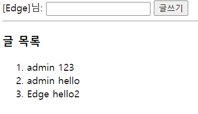 다른 브라우저에서 다른 아이디로 접속해 글을 남겨도 적용이 같이 된다.