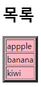 <kim:test border="5" bgcolor="lightpink">목록</kim:test>