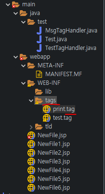 + 커스텀 태그는 WEB-INF/tags 폴더 안에 따로 관리해준다!