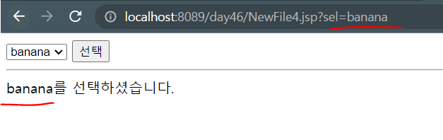 <option ${param.sel=='banana' ? 'selected':''}>banana</option>