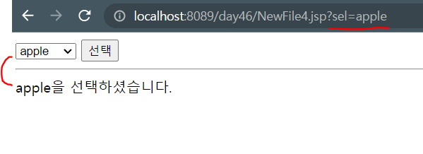 <!-- 이전에 선택된 것이 apple이니? 그렇다면 셀렉트되게 -->