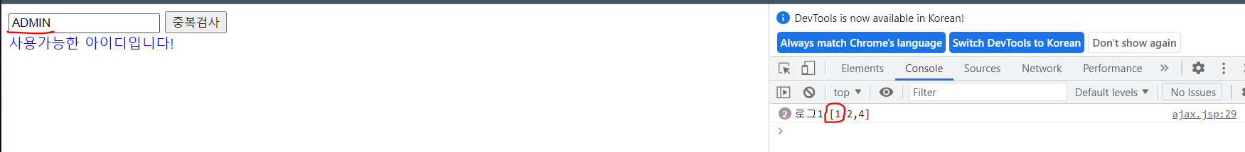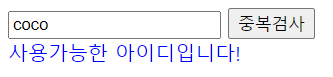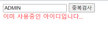 → 여기서 주의할 점은 ajax에서 수행 된 내용의 값이 있다는 전제, ( 중복 된 아이디라고 실패가 된 것은 아님 )