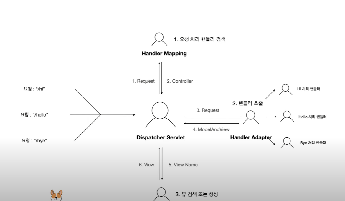 → Dispatcher Servlet이 스프링 컨테이너로부터 주입을 받아서 사용하고 동작을 하게 됨!!