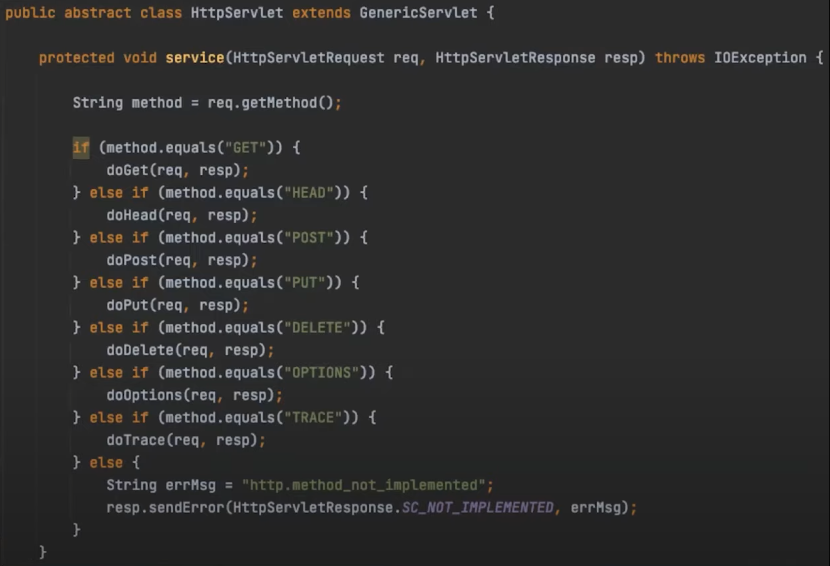 ✔ 이 때, 서블릿이 요구하는 구현 규칙을 지켜주면서 서블릿을 정의해주면 http 요청 정보를 쉽게 사용할 수 있고,