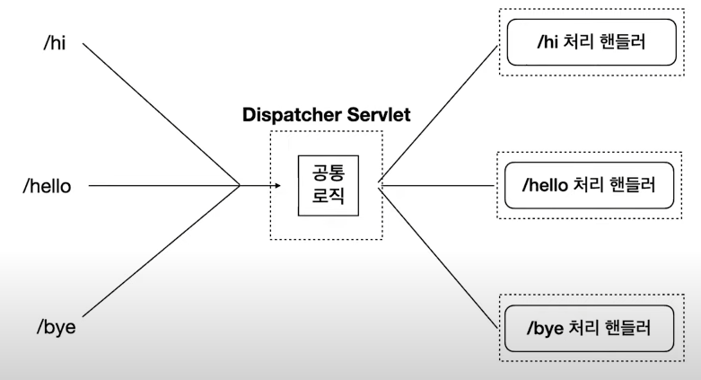 ✔ Spring에서도 Dispatcher Servlet을 하나만 두고, 모든 요청을 다 받을 수 있도록 함!