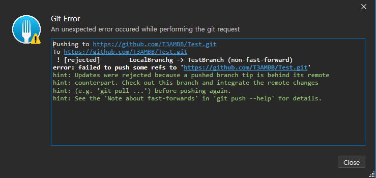 ↓ 즉 , Pull이 되지 않은 상태에서 commit 을 push하려다 생기는 경우가 많은데,