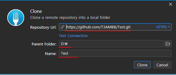 중간에 Parent Folder는 자신이 사용할 로컬폴더를 지정해주면 됩니다. ( 내 컴퓨터에 만들 폴더 )