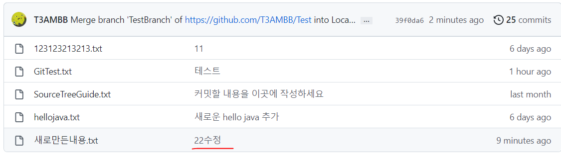 1) 다른사람의 commit과 나의 commit을 병합(merge) 해보자!
