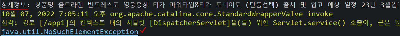 로깅을 통해 상세정보: 까지는 정상적으로 출력이 되는 것을 확인하였는데