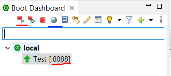 Test 프로젝트가 8088 포트로 실행된 것을 볼 수 있으며, 상단에 지구본 모양으로 웹 페이지 출력도 볼 수 있다.