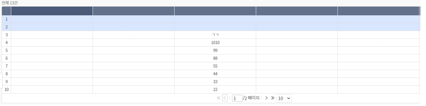 전체 13건의 게시글에서, 한페이지에 10개까지 출력이 되며,