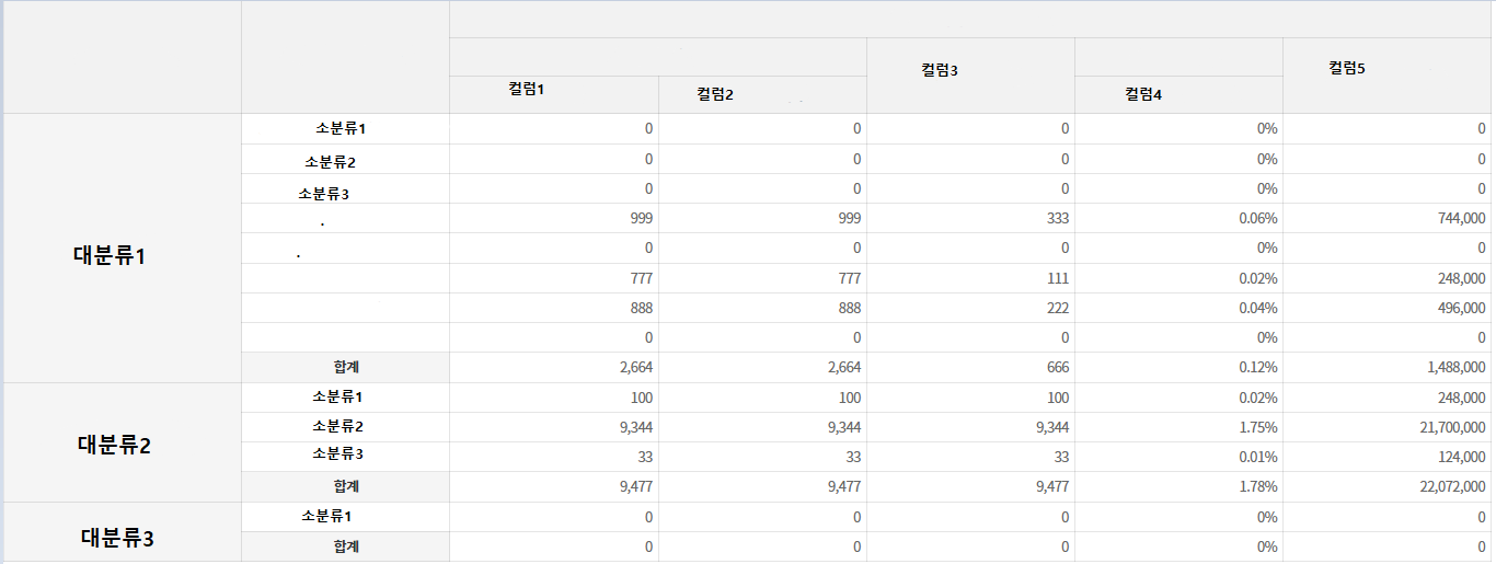 다음과 같이, 합계는 대분류 끼리 따로 나오게 할 것이다.