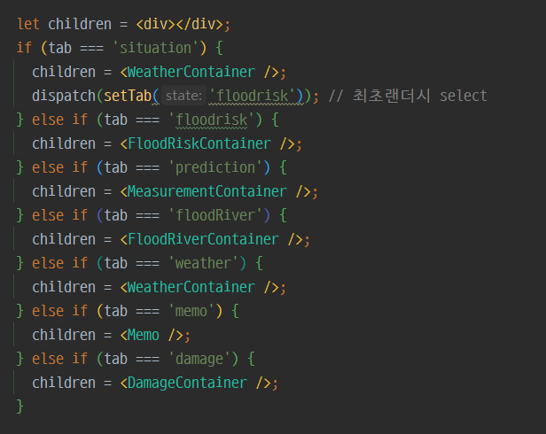 원래 목적은 최초 실행 시에 선택한 탭을 floodRisk로 설정하기 위해 하였던 것이기 때문에,