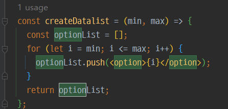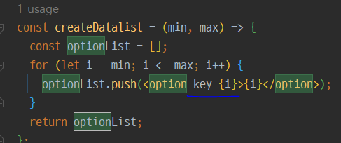 그 후 optionList에 담아 화면에 표출해줄 예정이다. 현재 <option>{i}</option>을 배열에 담아주고 있는데,