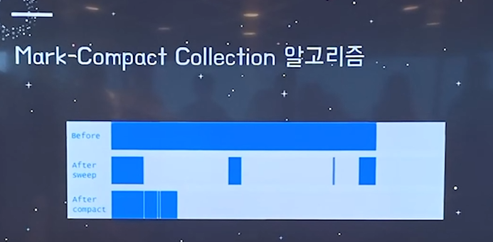 3. 마킹되지 않은 객체를 Heap에서 제거한다. => 이러한 과정을 쓸어내린다고 해서 Sweep